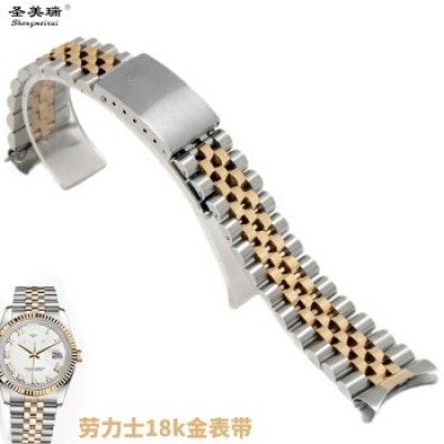圣美瑞(shengmeirui)钢手表带 18K金钢表带适用于劳力士精钢手表带 男 20mm间金色 18k金间金色 20mm